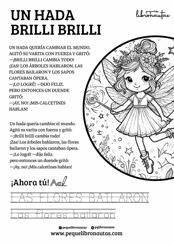 Descarga cuentos infantiles ideales para niños y niñas que empiezan a leer. Cada cuento incluye un dibujo para pintar y letras para reseguir.